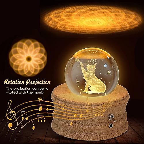 JOIENDY Carillon con Sfera di Cristallo, Rotazione a 360° della Base 3D Palla di Cristallo 70mm Sfera Vetro Lampada a LED Regalo per Natale Compleanno San Valentino della Mamma Decorazione