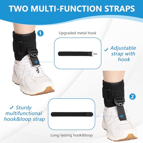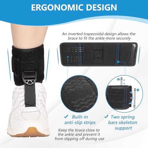 【MATERIALE DI ALTA QUALITÀ E SICURO】Il tutore per la caduta dei piedi è realizzato in morbida schiuma e tessuto di nylon traspirante per mantenere le caviglie fresche e confortevoli. Il materiale del velcro è stato migliorato per una vestibilità più forte e più stretta. I ganci metallici aggiornati forniscono un supporto più solido e resistente. Il tutore per la caduta dei piedi ha una forma trapezoidale invertita e una fodera con strisce antiscivolo per una migliore aderenza alla caviglia.