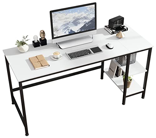 JOISCOPE Scrivania per Computer, Scrittoio con 2 Ripiani a Sinistra o Destra, Tavolo in Stile Industriale Realizzato in Legno e Metallo,152 x 60 x 75 cm(Nuovo Finitura Bianca)