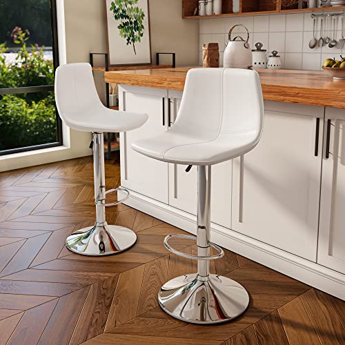 JOISCOPE Sgabelli da Bar Set di 2, Sgabelli Cucina Moderni Design, Sgabello Alto con Schienale, Sgabello Regolabile e Girevole, Per Cucina Caffetteria Pub Hotel Soggiorno Ufficio, F-Bianco