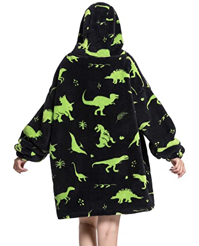 JOJJJOJ Coperta oversize con cappuccio, con tasca gigante, coperta comoda e calda in pile Sherpa, felpa/accappatoio per uomini e donne, idea regalo per ragazzi, Dinosaur, taglia unica plus
