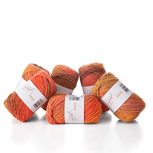 Ggh Joker Box - 6 gomitoli - Lana vergine misto con gradiente di colore - Lana per lavorare a maglia o all'uncinetto colore 025 - Corallo Arancio