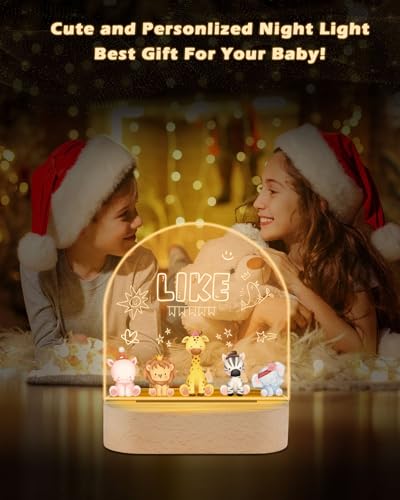JOKSNK Luce Notturna Bambini Personalizzata, Lampada Personalizzata con Nome, Luce Notturna Bambini, Lampada Personalizzata Animale, Regalo Battesimo Bimbo Regali di Compleanno Regali Natale