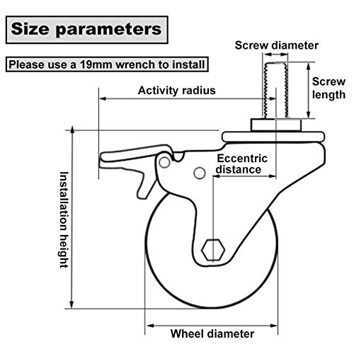 ◆ Dimensioni: ruote filettate diametro 100mm, larghezza ruota 32mm, vite M14 / M16X30mm, capacità di carico singola ruota 112KG, eccentricità 35mm, raggio d'azione 85 / 115mm, facile da installare.