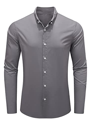 Jolicloth Camicie da Uomo Manica Lunga Camicia Intelligente Cotone Affari vestibilità Regolare Casual Button Down Camicie Oxford Grigio XL
