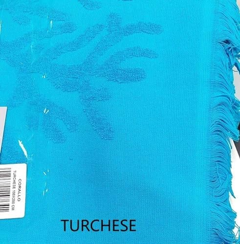 Jolie Firenze - BIBIHOME Telo mare Spugna Fouta spugna Jacquard Corallo in 100% cotone con frange (100x200 cm.) (TURCHESE)