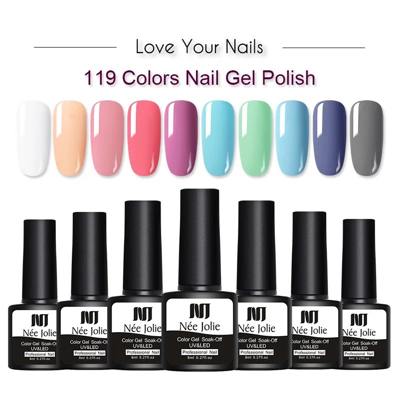NEE JOLIE 8ML Nail Gel Polish Nail Colors Soak Off UV Gel Varnish One-shot Color Nail Art UV LED Gel varnish Decoration