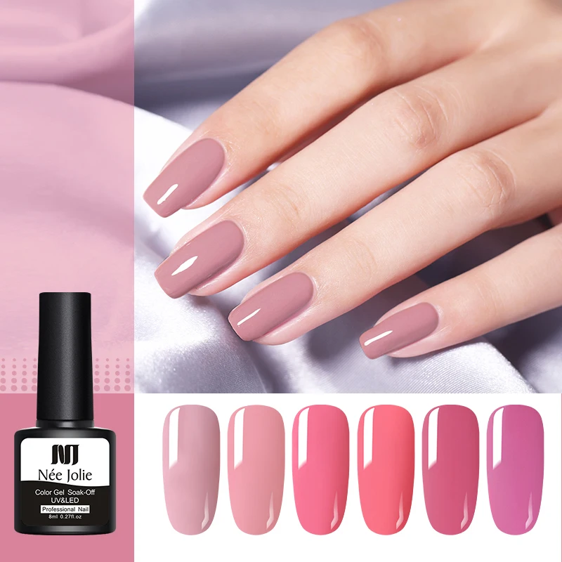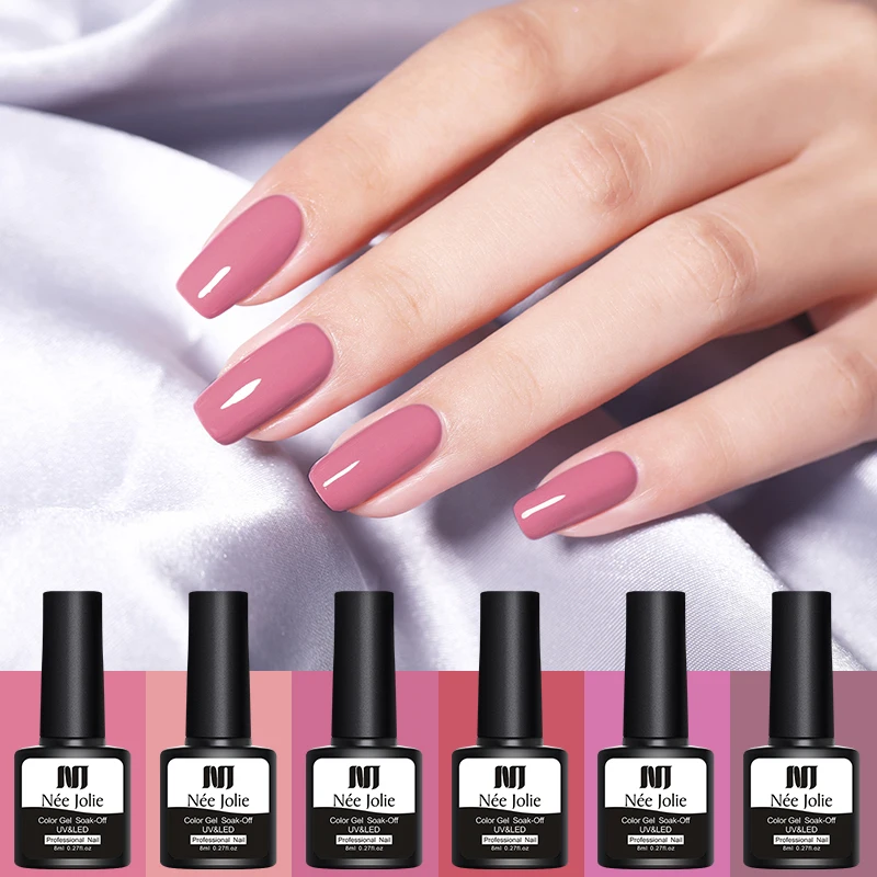 NEE JOLIE 8ml Gel Nail Polish Varnishes Solid Color Semi Permanent Base Top Need UV LED Lamp Manicures Paint Nails Gel Polish