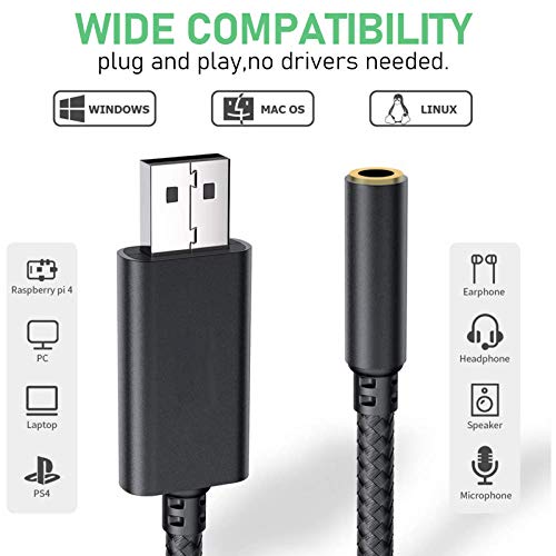 【Ascolta e parla】Collega le tue cuffie a filo con un microfono in linea o un altoparlante a MacBook, Surface, PC, Portatile, Pc fisso, Chromebook, PS4 mediante la porta USB. Compatibile con cuffie CTIA TRRS 4 poli 3.5 mm, microfono TRRS o altoparlante. NON funziona su auto, TV, Proiettore, Xbox e PS3. Il controllo del volume in linea sulle cuffie standard Apple sarà disabilitato.