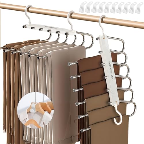 JOLIGAEA 6 in 1 Grucce Pantaloni, 2 Pezzi Acciaio Inossidabile Grucce per Pantaloni, Grucce Pantaloni Salvaspazio, Appendini Portatili Multifunzione, Appendiabiti per Pantaloni, Gonne, Sciarpe