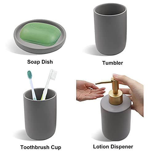 JOLIGAEA 4 Pezzi Set di Accessori da Bagno in Ceramica per Casa e Hotel Incluso Distributore per Lozione Bicchieri per Spazzolino da Denti e Portasapone, Non Ammuffito, Durevole