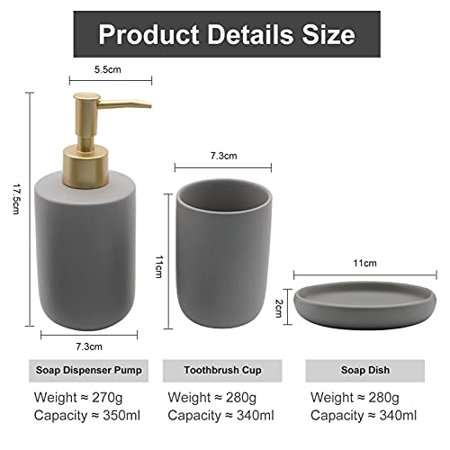 JOLIGAEA 3 Pezzi Set di Accessori da Bagno in Ceramica per Casa e Hotel Incluso Distributore per Lozione Bicchieri per Spazzolino da Denti e Portasapone, Non Ammuffito, Durevole