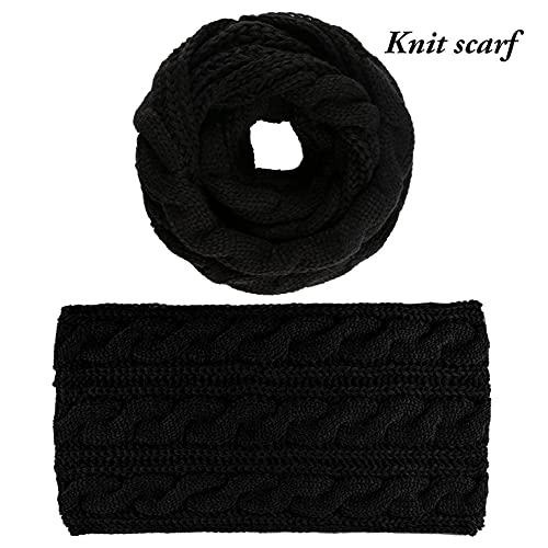 Joligiao Donna Cappello In Maglia Sciarpa e Guanti Invernali 3 Pezzi uomo Berretto In Maglia Scarves Scaldacollo Guanti Touch Screen Unisex Thermal Sport All'aperto(nero,Taglia unica)