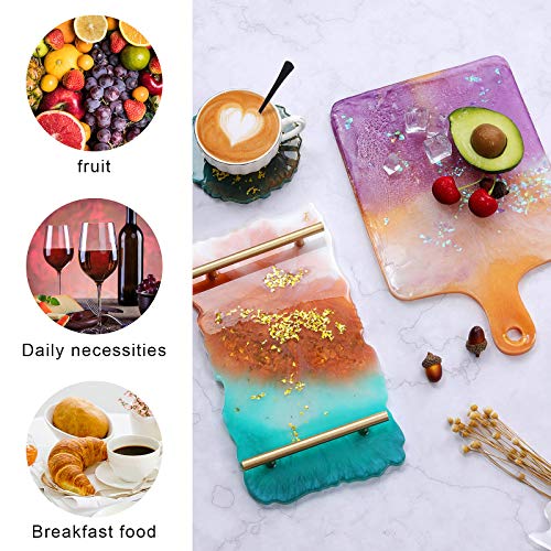 Jolintek Stampi per Resina, Stampi per Vassoi in Resina Siliconica, Stampi in Slicone per Sottobicchieri, Stampo Resina Vassoio Frutta e 2 Manici Dorati, Fai da Te Stampi in Slicone per Resina