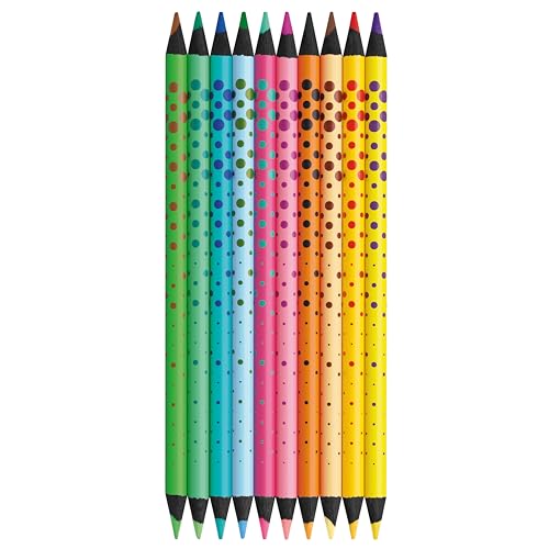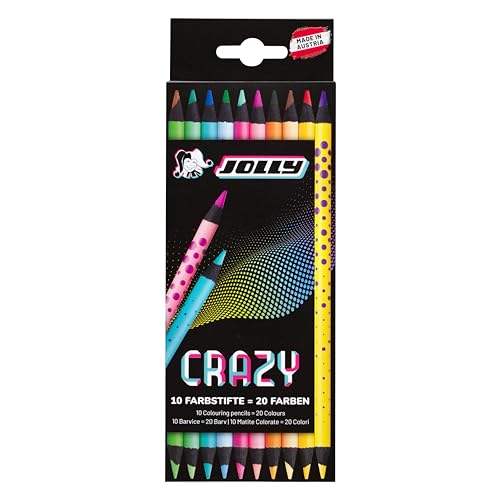 JOLLY Next Generation, Matite colorate Crazy, 10 matite colorate infrangibili double face con 20 colori, legno nero, forma rotonda ergonomica, design alla moda