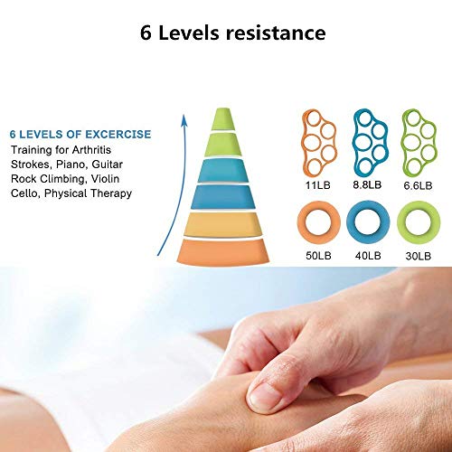 JollyJelly Kit di Allenamento per L'anello con Impugnatura per Dita, 6 Pack Finger Hand Exerciser Forza Extensor Trainer 3 Livelli di Resistenza Easy Medium Heavy Aumenta la Forza Sia