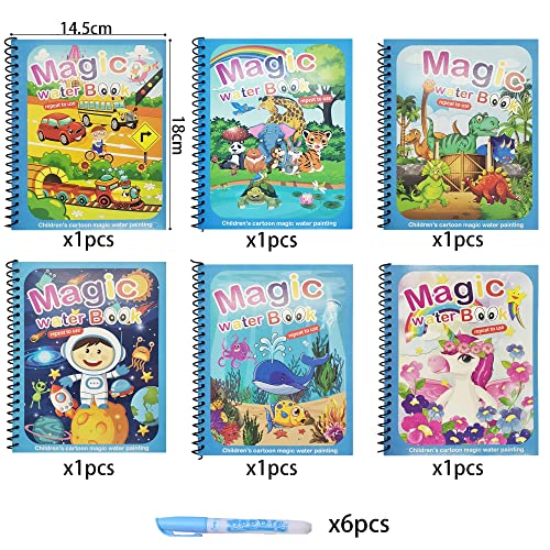 Jolyeictor 6 Pezzi Libro ad Acqua per Bambini,Libro da Disegno ad Acqua,Libro di Pittura ad Acqua per Bambini,Libro da Disegno ad Acqua Riutilizzabile,Libro da Colorare con Penna ad Acqua