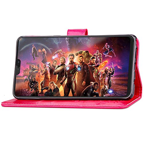 JOMA-E Shop Oneplus 6 custodia con protezione schermo inclusa, realizzata a mano in pelle sintetica con strass, con supporto per carte di credito, per Oneplus 6 (rosa)