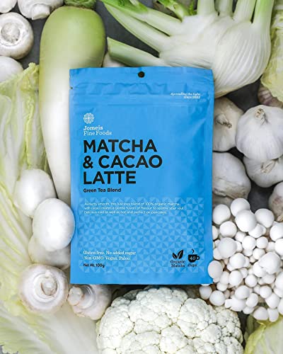 Jomeis Latte nutrizionale | Vegano, Senza caffeina, Paleo, Halal, Kosher, Alcalino, Adattogeno, Keto & Kid Friendly (Matcha e Cacao Biologico)