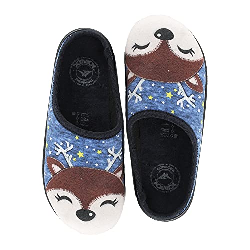 Pantofole donna con tomaia realizzata in tessuto caldo fantasia natalizia renna