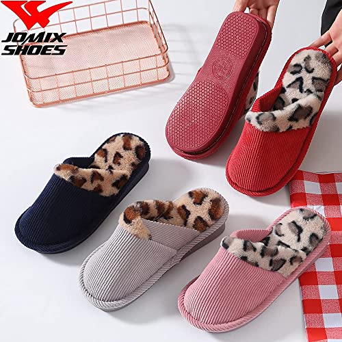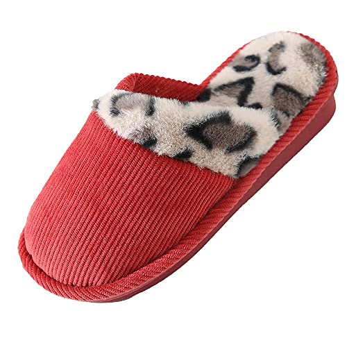 JOMIX Ciabatte Donna Invernali Leopardate Pantofole Donna Invernali con Zeppa Calde e Comode MD3537 (I Rosso, 41)
