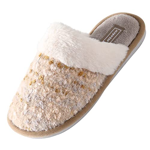 JOMIX Ciabatte Donna Invernali Punta Chiusa Pantofole Donna Invernali Calde e Comode MD3482 (G Beige, 38)