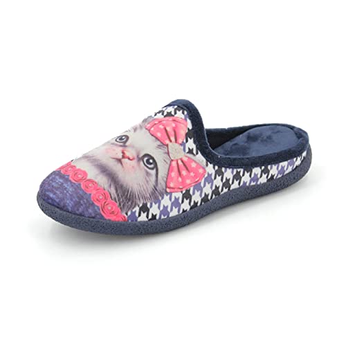 JOMIX Ciabatte Gatto Donna Punta Chiusa Pantofole Donna Invernali (Blu, numeric_40)