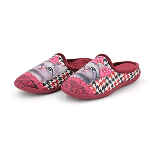 JOMIX Ciabatte Gatto Donna Punta Chiusa Pantofole Donna Invernali Calde Comode e Leggere MD3600 (04 Rosso, 41)