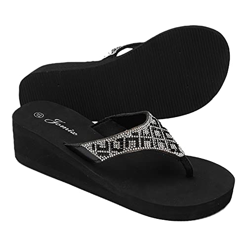 JOMIX Ciabatte Infradito Donna Estive Eleganti Strass Infradito con Zeppa Comode Casa Mare Spiaggia Piscina SD5115 (03 Nero, 37)