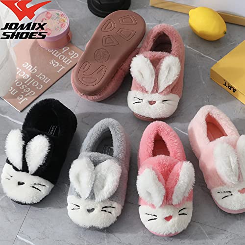Jomix Pantofole da Bambini Babbucce Basse Invernali Calde Pelliccia Sintetica Ciabatte Coniglio Unisex Bambino Bambina Orecchie MP3693 (02 Nero, 28)