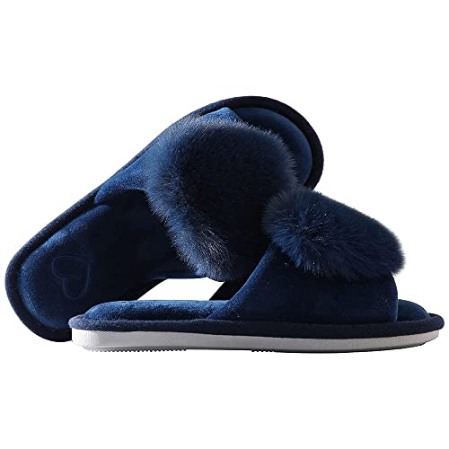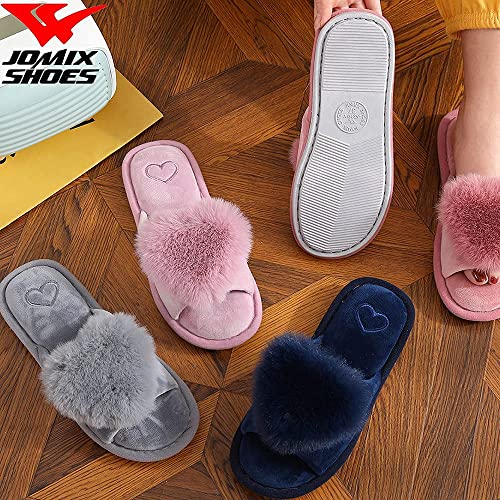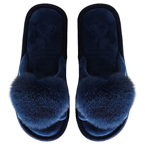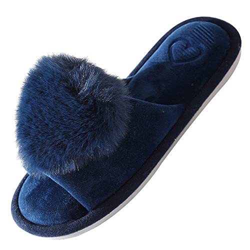 JOMIX Pantofole Donna Peluche Cuore Peloso Ciabatte Donna Aperte Invernali MD3637 MD6030 (B Blu, 38)