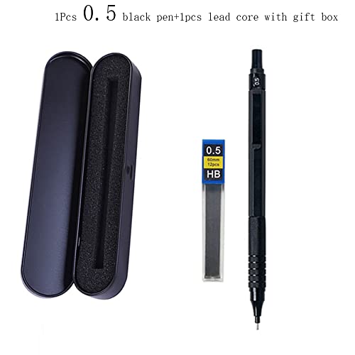 JOMPENS 0.3 0.5 0.7 2.0mm matita automatica Matita meccanica retrattile in metallo basso centro di gravità. Può essere utilizzato per lo schizzo degli studenti (0.5 Penna nera Scatola regalo nera)