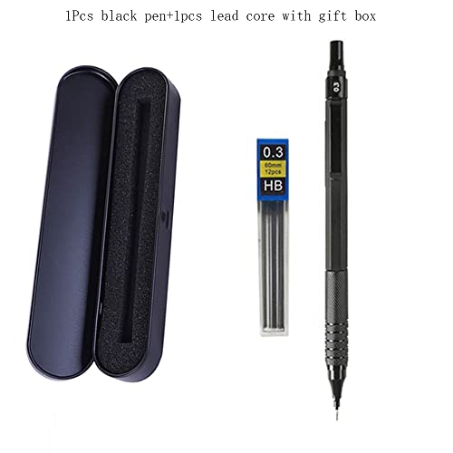 JOMPENS 0.3 0.5 0.7 2.0mm matita automatica Matita meccanica retrattile in metallo basso centro di gravità. Può essere utilizzato per lo schizzo degli studenti (0.3 Penna nera Scatola regalo nera)