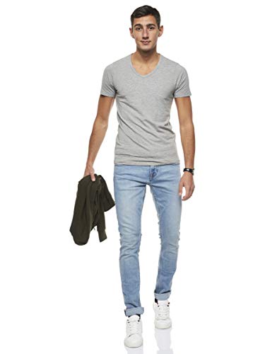 Jack & Jones Basic V-Neck Tee S/S Noos T-Shirt, Grigio (Grau (Light Grey Melange), M Uomo
