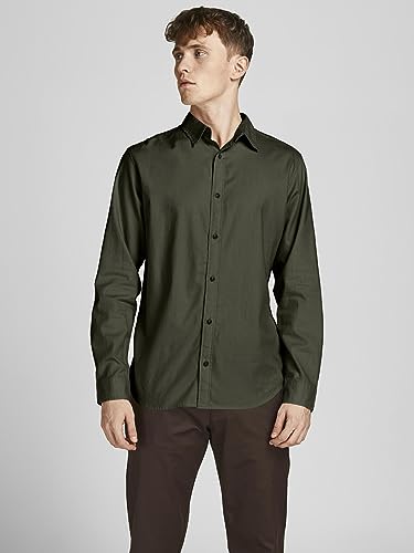 JACK & JONES Camicia tinta unita, notte foresta, XS