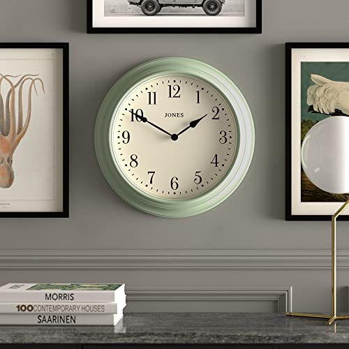 Jones Clocks ® Cena Club grande parete orologio design classico con bei numeri arabi per la casa cucina sala da pranzo soggiorno ufficio 40 cm (Uovo d'anatra)