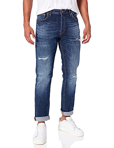 JACK & JONES Jeans Tim Regular, Lavaggio scambiato con Rotture e Cuciture a Vista. 30 29 Blu w29/30 Blu Denim
