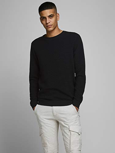 Jack & Jones Jjeliam Knit Crew Neck Noos Felpa, Nero (Black Black), Large Uomo
