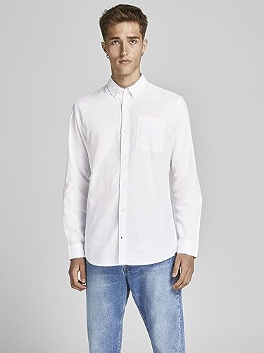 Jack & Jones JJEOXFORD Shirt L/S S21 Noos Camicia, White/Fit: Slim Fit, S Uomo