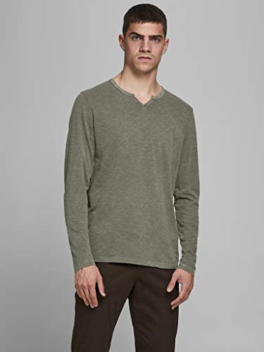 JACK & JONES JJESPLIT Neck Tee L/S Noos Maglietta a Maniche Lunghe, Notte Foresta, S Uomo