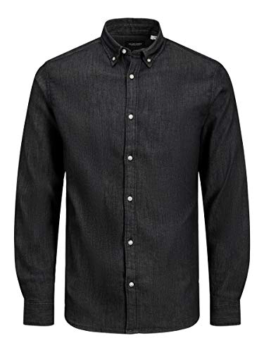 Jack & Jones JJILEON Stretch Shirt L/S Noos Camicia Button-Down, Black Denim, M Uomo