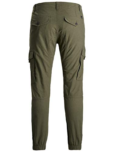 JACK & JONES JJIPAUL JJFLAKE Linen AKM 982 STS Pantaloni, Olive Night, 32W / 32L Uomo