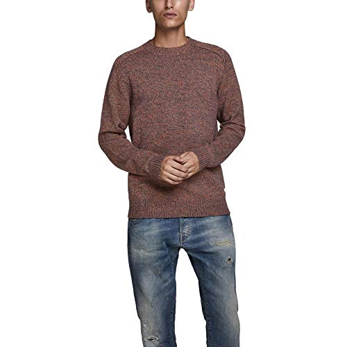 Jack & Jones JORMELIN Knit Crew Neck LTN Pullover, Burnt Ochre, S Uomo