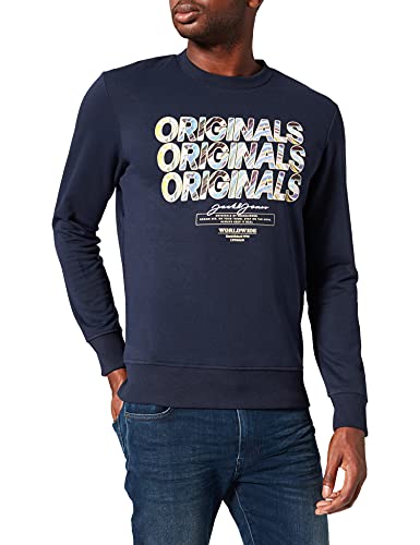 Jack & Jones JORSWIRL Sweat Crew Neck Felpa con Cappuccio, Navy Blazer/Fit: Standard, S Uomo