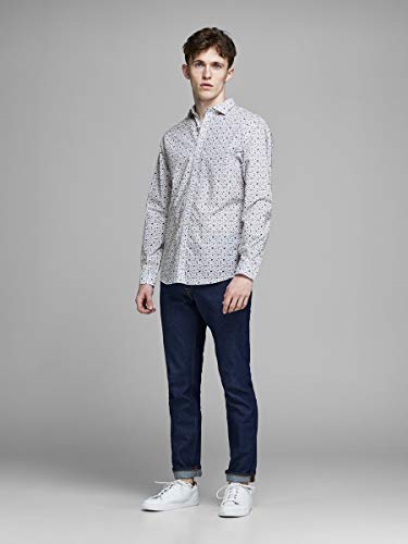 Jack & Jones Jprblackpool Shirt L/s Au19 STS Camicia, Bianco (White Slim Fit AOP), Large Uomo