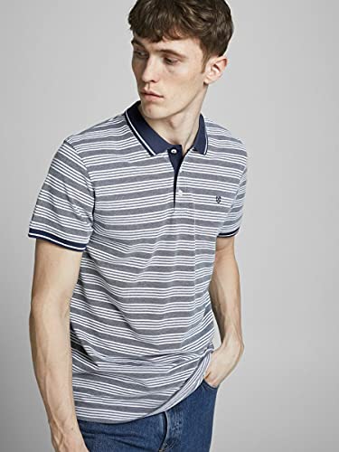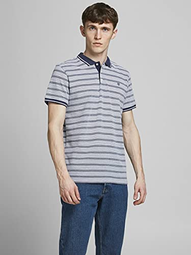 JACK & JONES JPRBLUWIN Light Stripe SS Polo, Indigo/Fit: Reg - Mixed W. White, XL Uomo