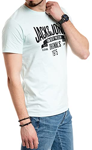 Jack and Jones - Maglietta da uomo in cotone, a maniche corte Bleached Aqua 019 L