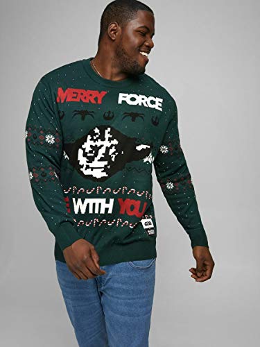 JACK & JONES Pullover Natalizio Maglione Star Wars CALIBRATO Taglie Forti Uomo (Verde, 5XL)