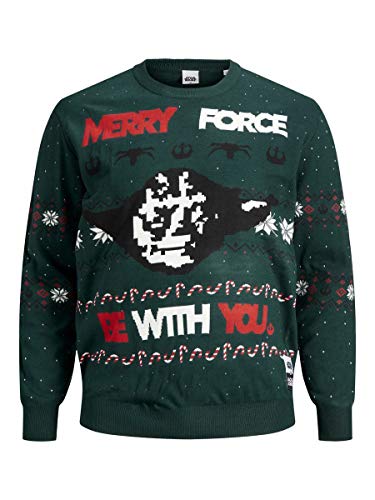 JACK & JONES Pullover Natalizio Maglione Star Wars CALIBRATO Taglie Forti Uomo (Verde, 4XL)