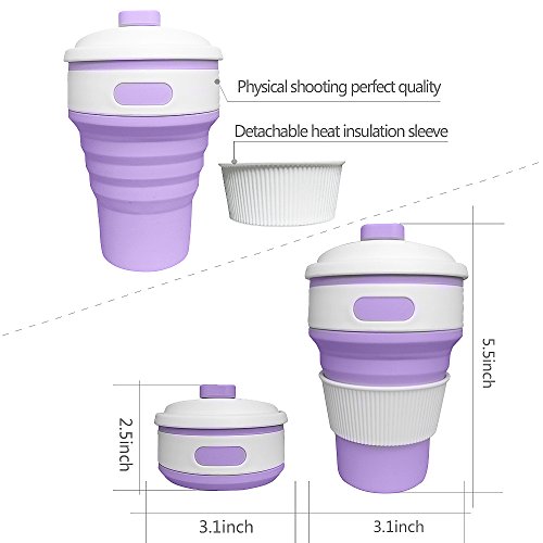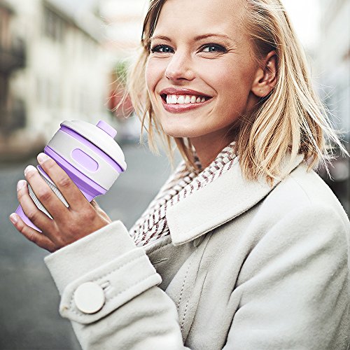 Jonhen Tazza Da Viaggio 12 oz,Cprova Di Perdita,Collassabile Silicone Cazza di Caffè, Boccale Regalo per Donne, Piccolo,Viola